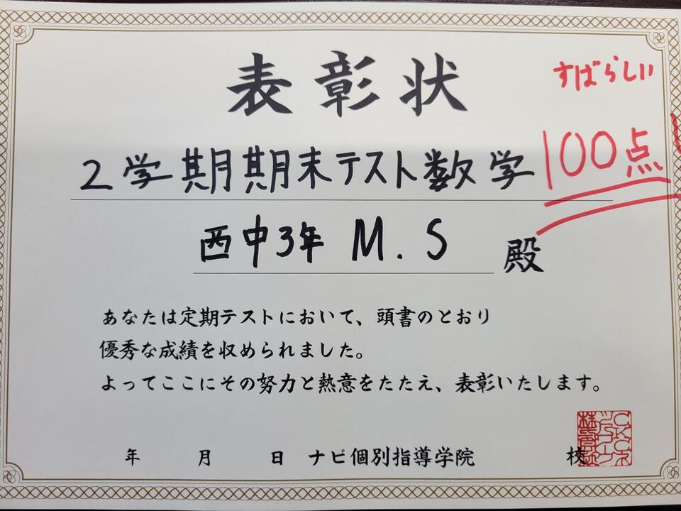 なんと最高得点の100点を取ってくれた生徒がいました。