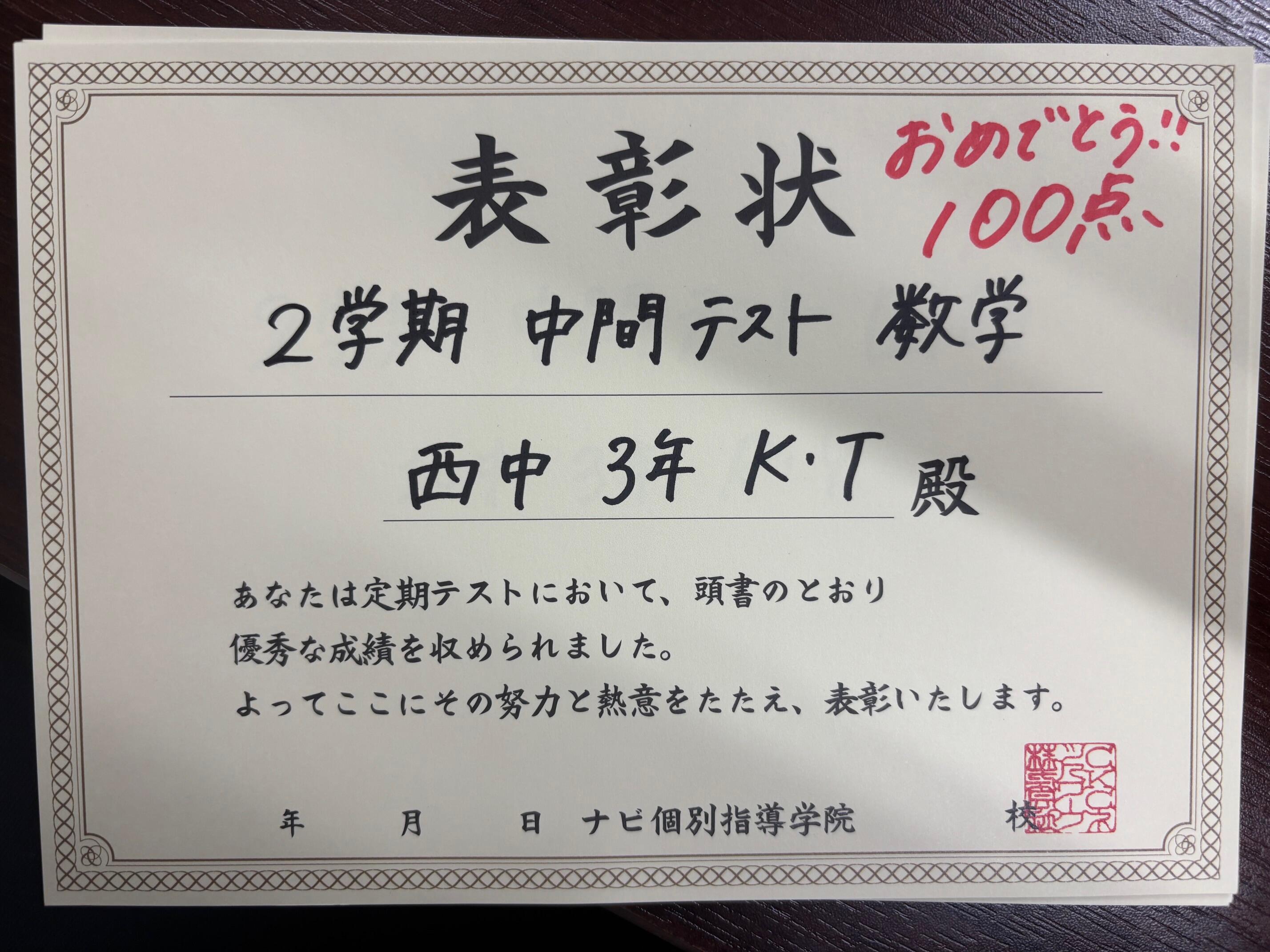 自習で質問や問題をひたむきに解いた結果かと思います。この調子でほかの今日も頑張って上げていこうね!