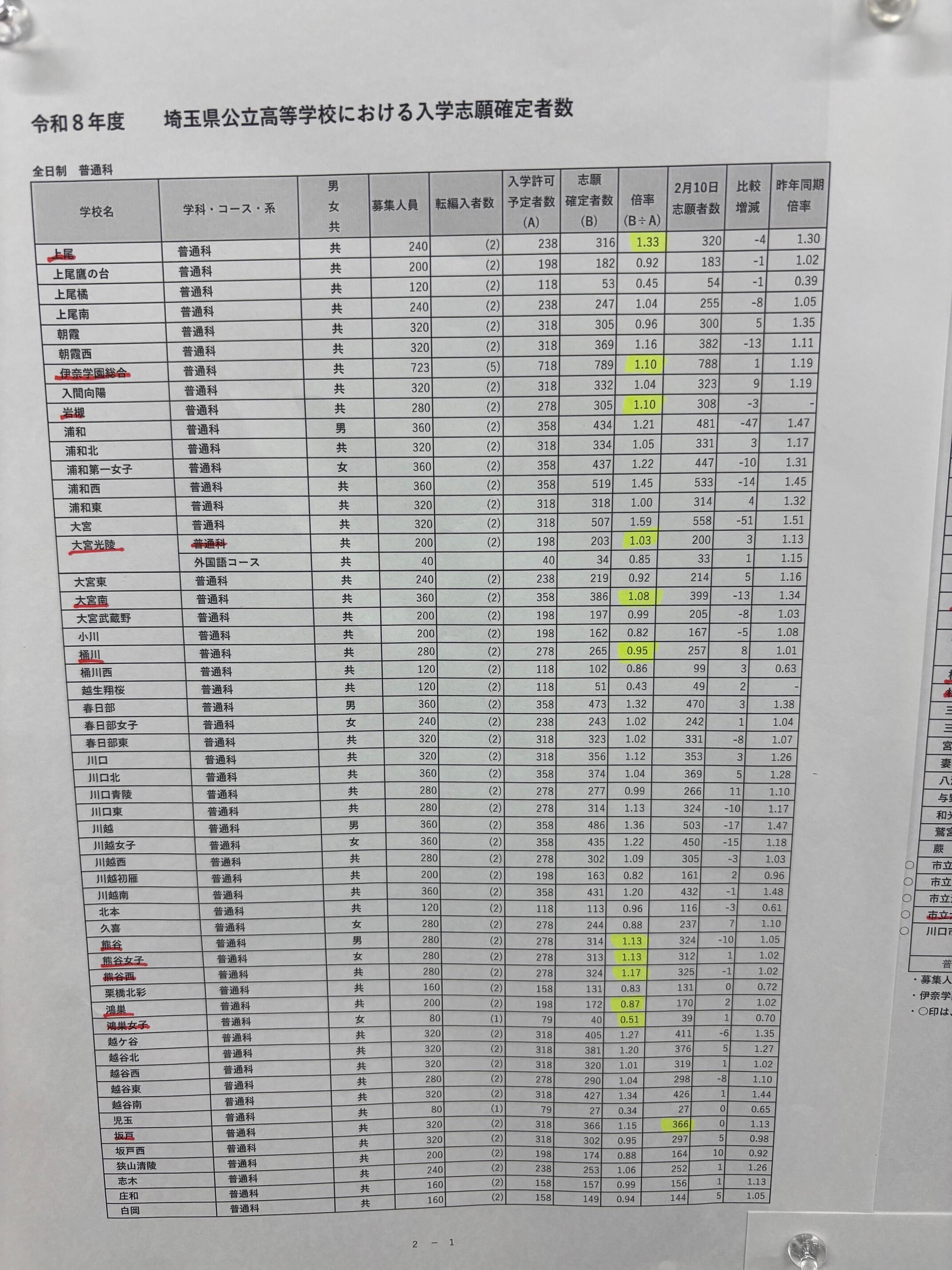 さて、本日埼玉県公立高校入試の確定倍率がでました!
