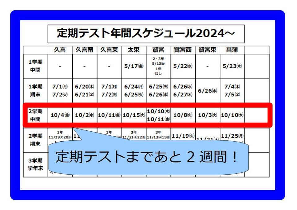 さて、いくつかの中学校では2週間後の10月1週目に2学期中間テストを控えています。