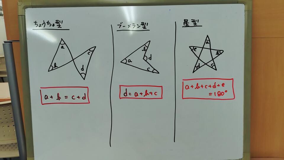 ちょうちょ型・ブーメラン型・星型の図形考え方は・・・言葉で表現しにくいので添付の写真を参考にしてください!