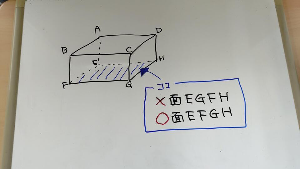平面をアルファベットで表す際に、「一周できる順番」に頂点をかくようにしましょう。