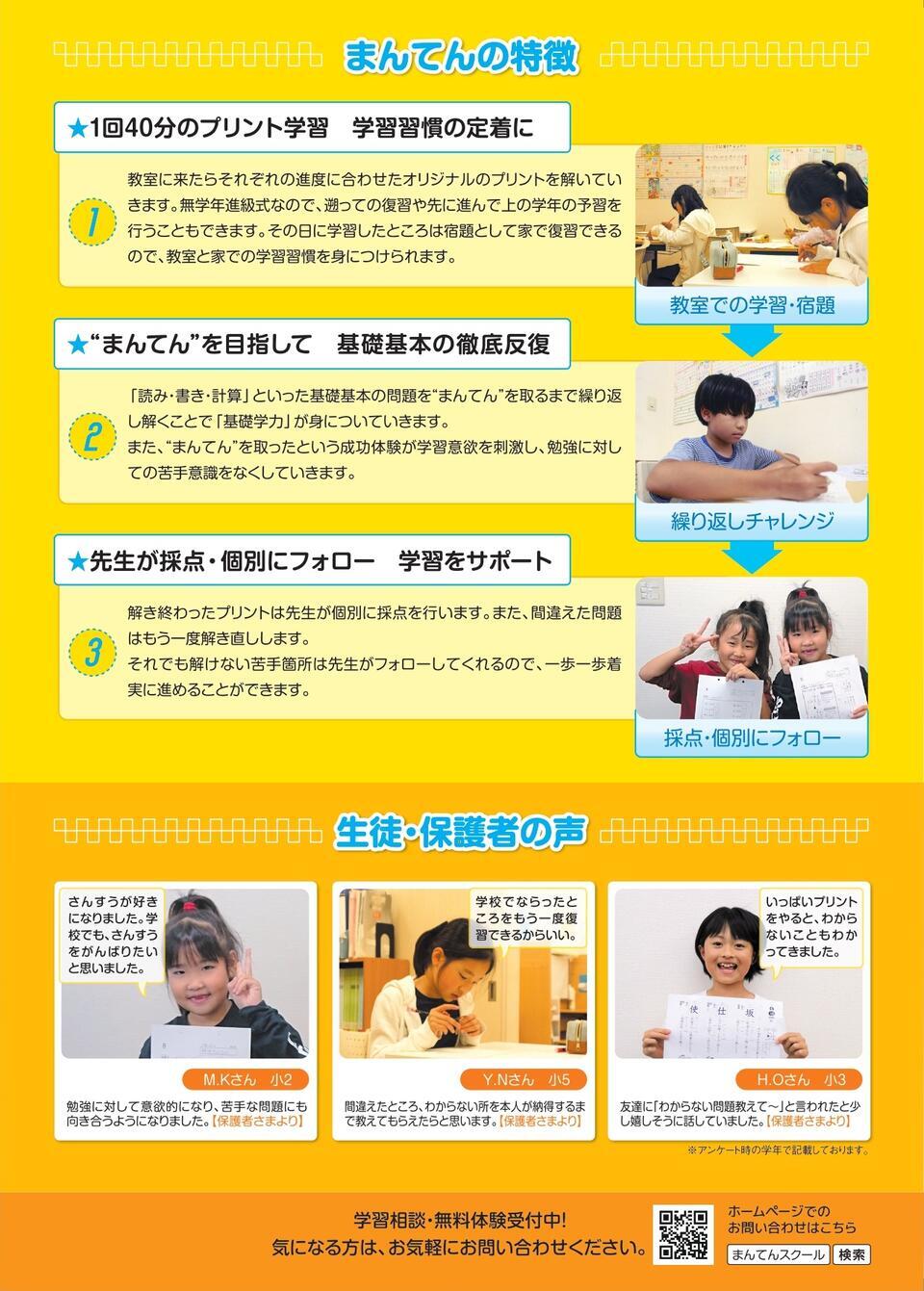 『まんてんスクール』は基礎学力に不安がある小学生、学習習慣をつけさせたい小学生に最適です。