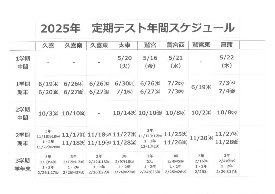 テスト範囲は、だいたいテスト2週間前に出されます。