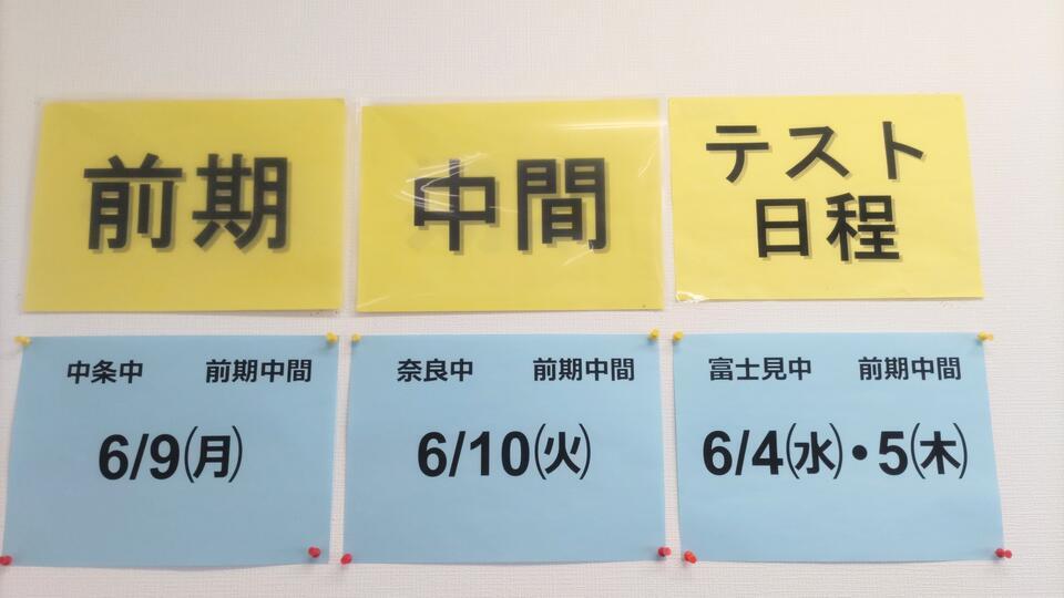 前期中間テストが行われる日程は各学校により多少の違いはありますが、5月末~6月上旬となります。