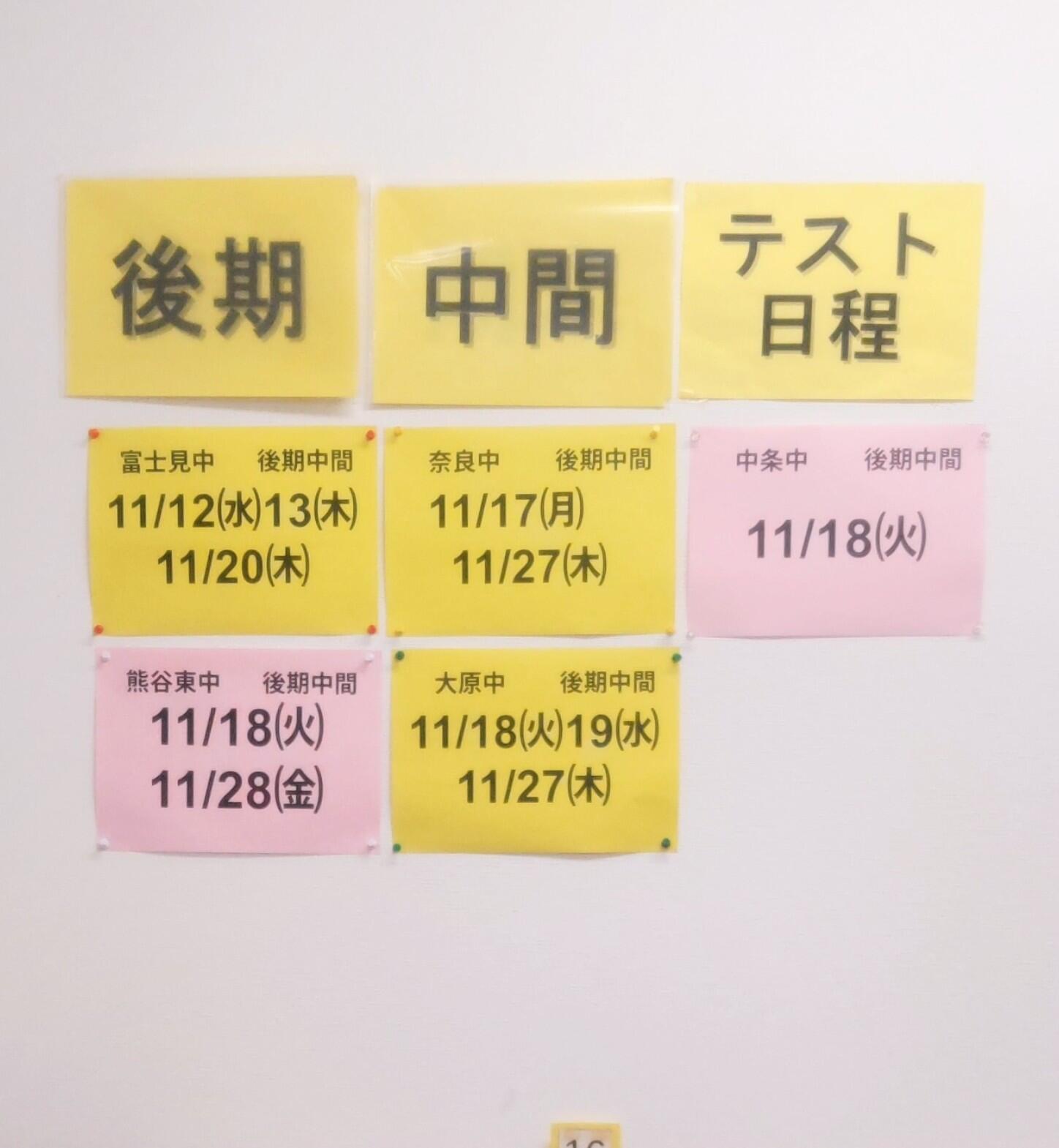 中1・中2の生徒にとっての後期中間テストは、多くの学校で11月に実施されますので、1か月を切ったところになりますね。