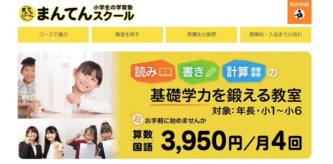 ナビ個別指導学院では、『読み・書き・計算』に特化した小学生限定のコース『まんてんスクール』をご用意いたしております。