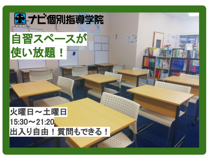 お家だと多くの誘惑があって集中できないという方、環境を変えて勉強したい方はぜひ利用してください。