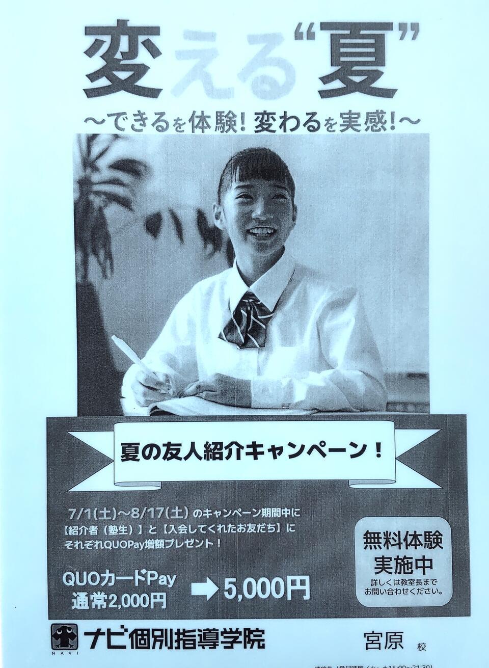 7/1~8/17の期間中に友人紹介でご入塾いただいた場合に、