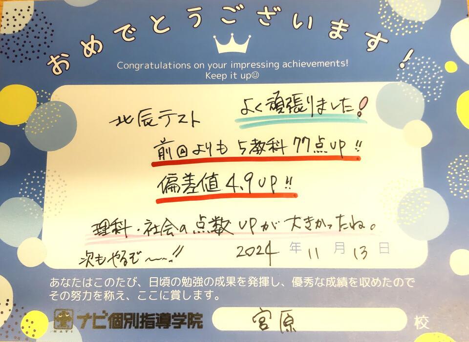 中3 K・Oくん 5教科77点UP! 偏差値4.9UP!