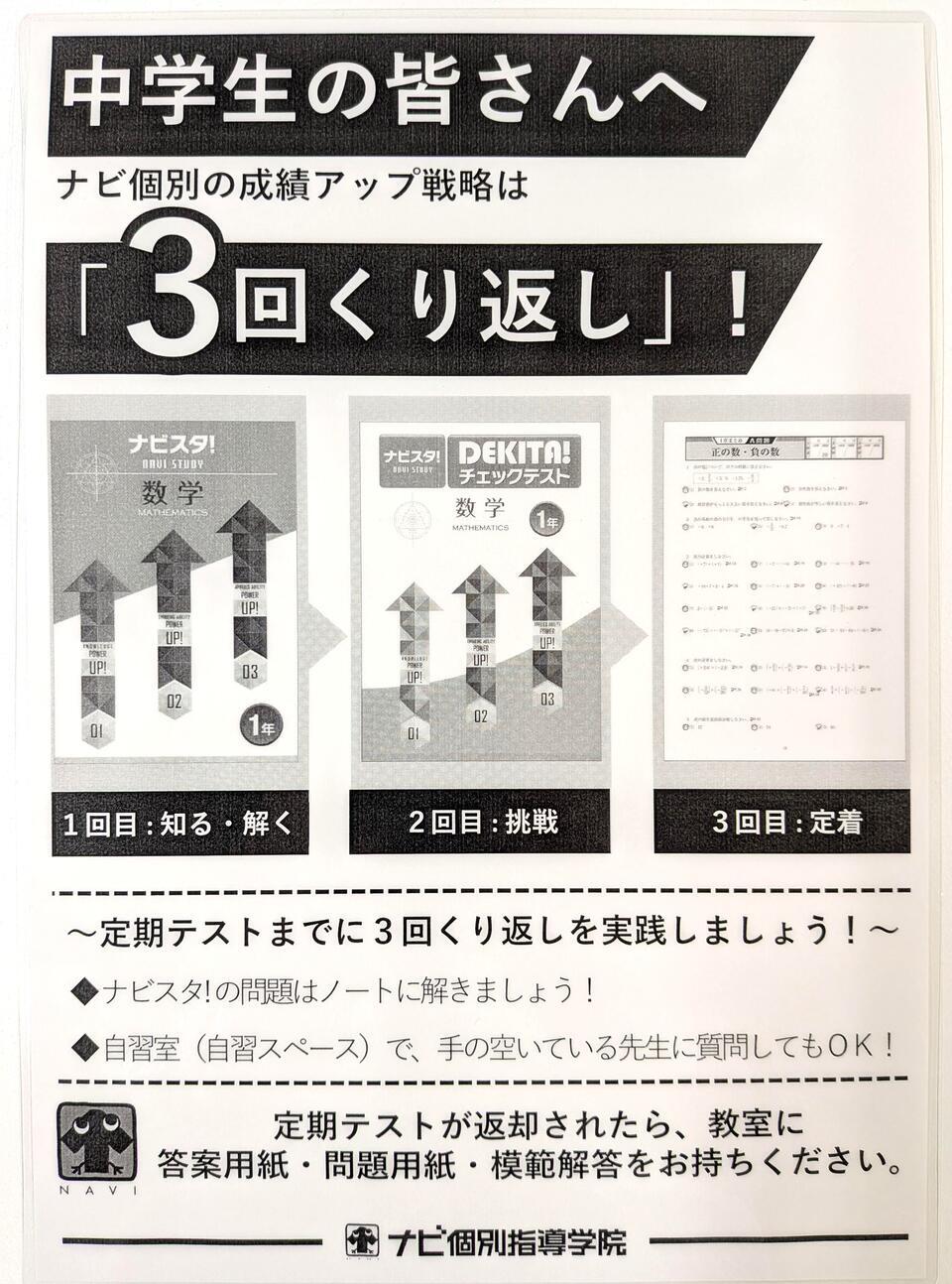 ナビ個別指導学院では、単元ごとの知識を確実に定着させるための「くり返し学習」を重視しています。