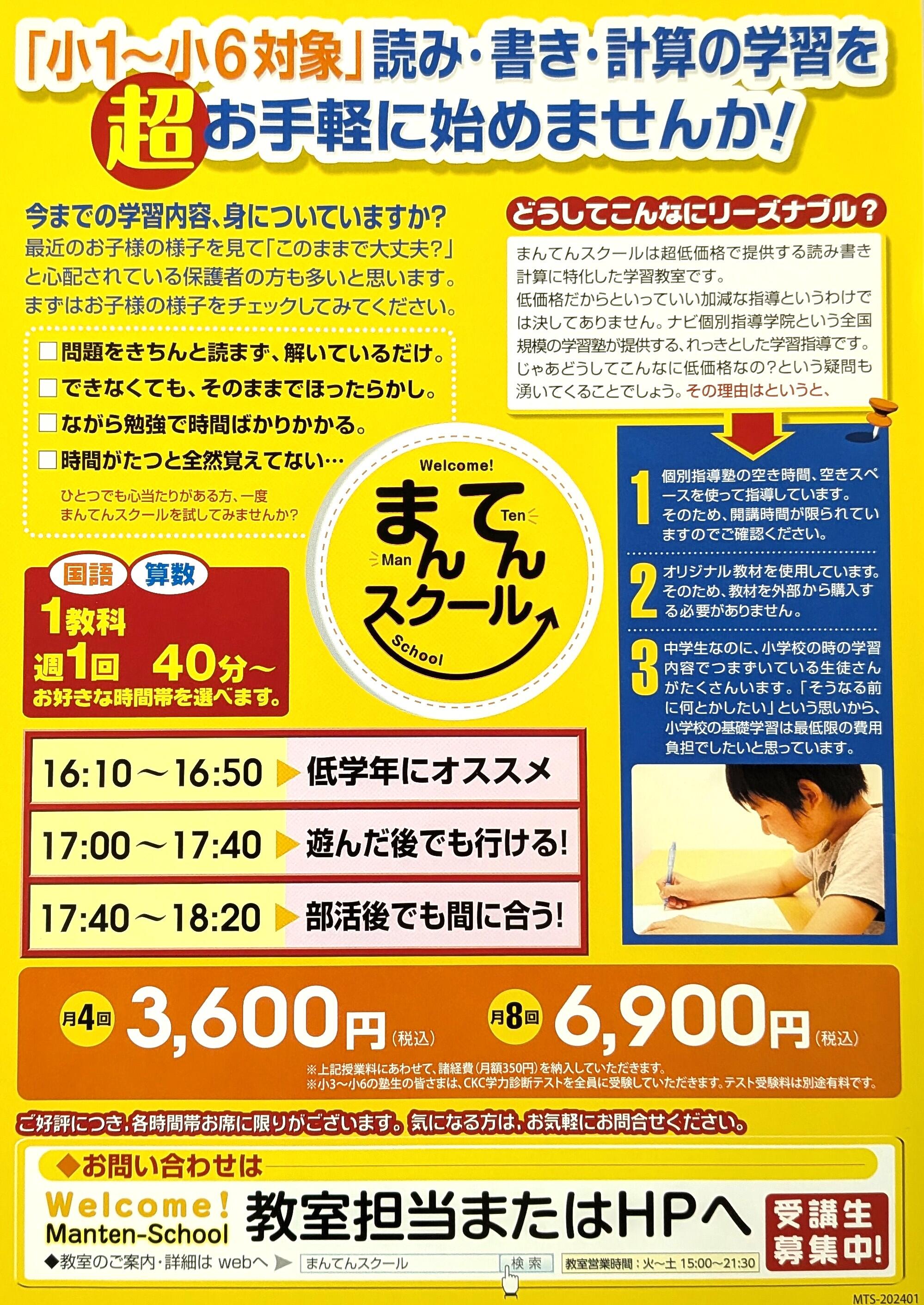 プリント学習講座「まんてんスクール」のご紹介です!