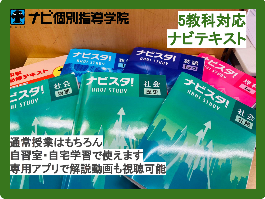 ナビ個別指導学院では、自社オリジナルである「ナビスタ!」というテキストを使って授業を進めています。