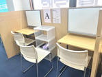 ナビ個別指導学院の授業は、個別の席ごとに設置された自分専用のホワイトボードで解き方や考え方を一緒に確認、それから生徒が問題を解くという「個別授業」スタイルです。