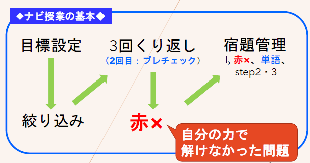 ナビ個別の授業は3周繰り返す中で理解度を深め、出来る問題を増やしていきます。