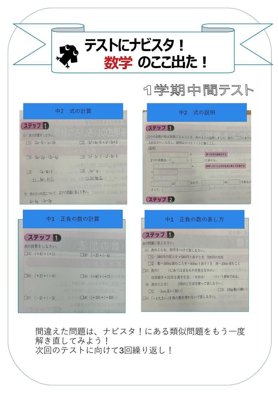 1学期の締めくくりのテストに向けて、「ナビスタ!」で一緒に対策してみましょう!