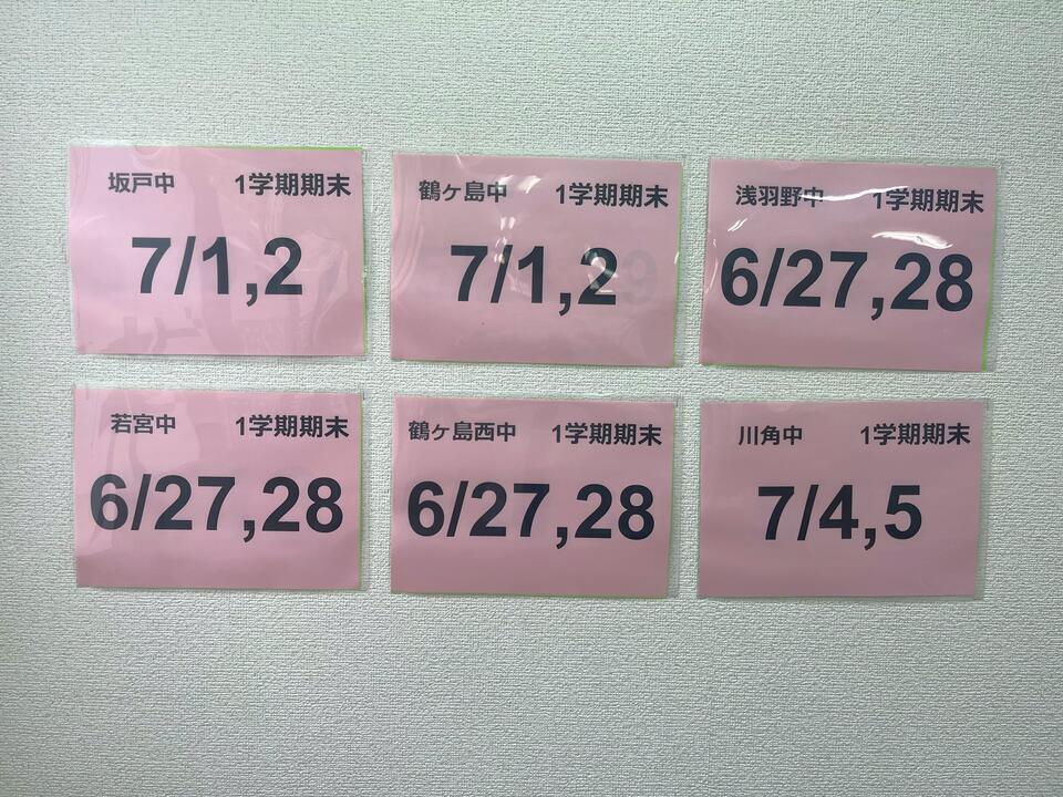 昨日今日で期末テストが実施された若宮中、浅羽野中、鶴ヶ島西中の皆さん、お疲れ様でした。