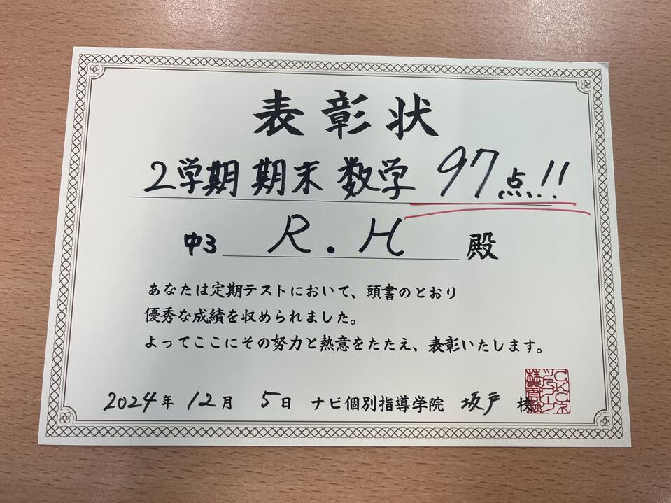 中学3年生のRくんは、今回の期末テストで数学がなんと97点でした!!