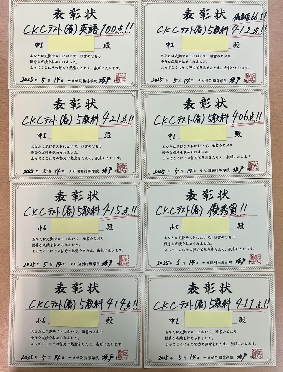 成績優秀者には、教室長から賞状のプレゼントです! おめでとう!!
