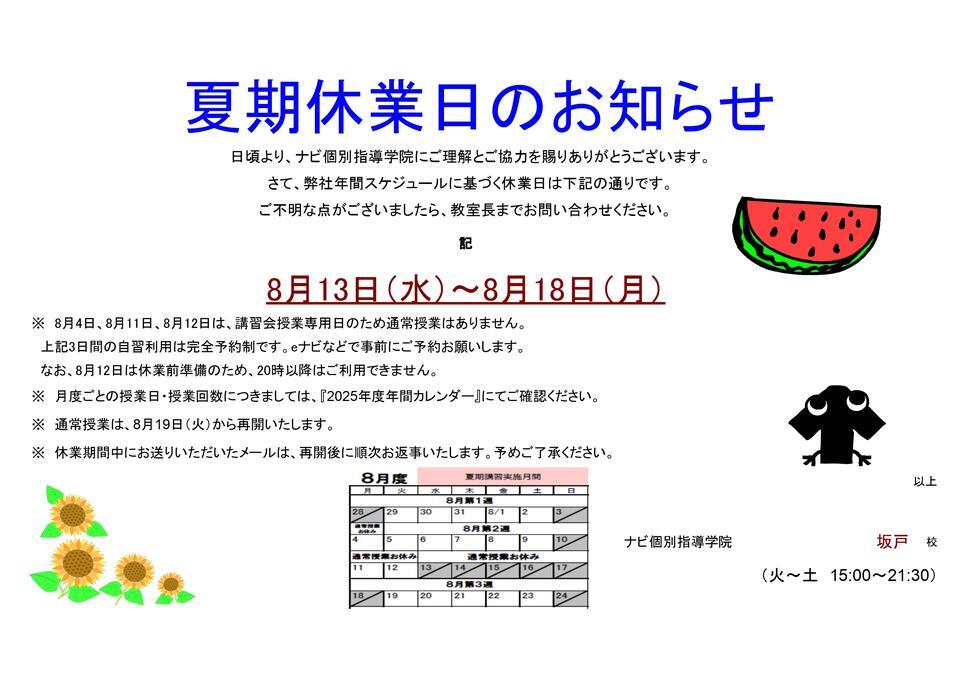 今回は、夏期休業のお知らせです。
