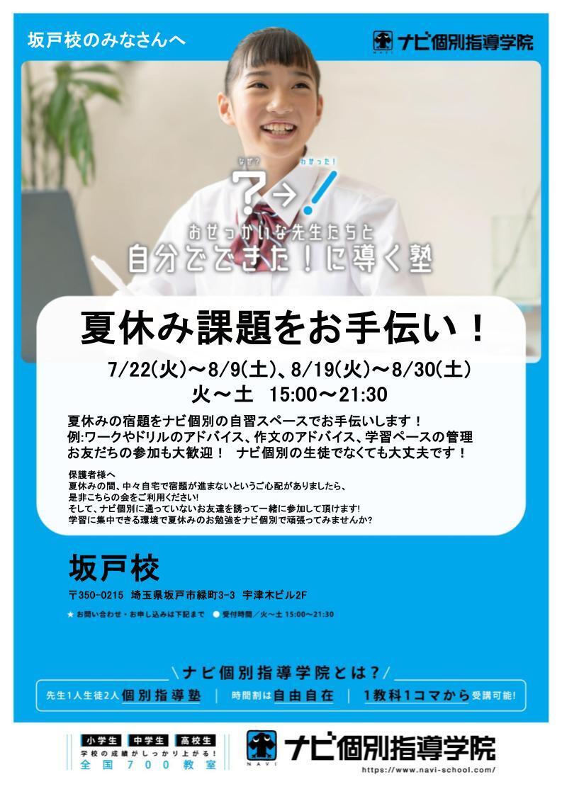 本日は夏休み特別企画 「夏休み課題お手伝い!勉強会」のお知らせです。