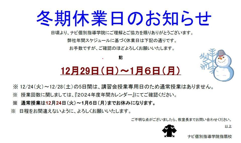 ナビ個別指導学院の年末年始のスケジュールをお伝えします。