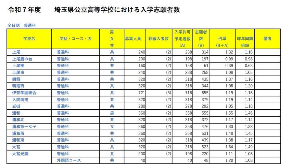 2月10日(月)に埼玉県教育委員会から公立高校の倍率が発表されました。