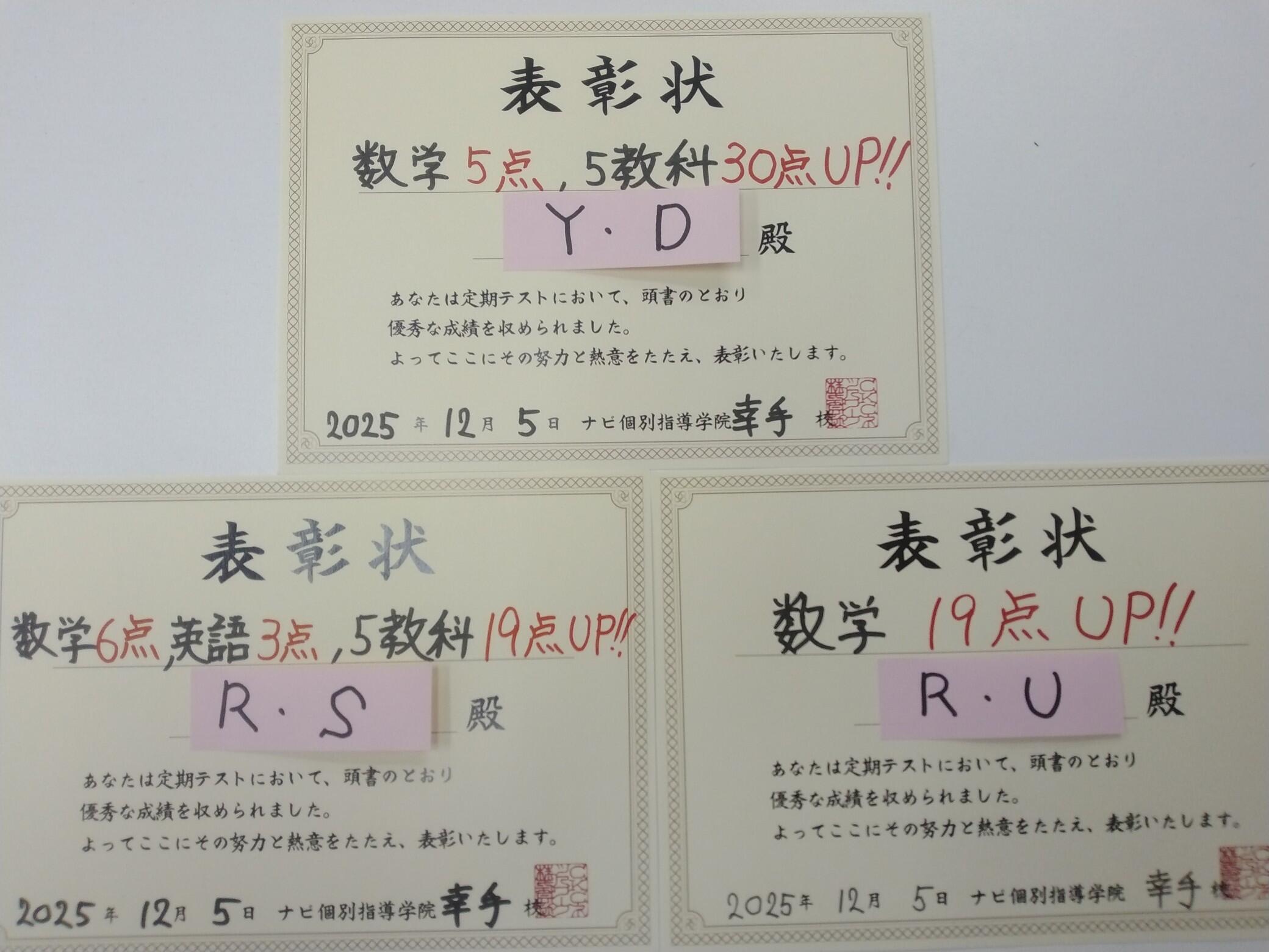 数学 6点UP!! 英語 3点UP!! 合計 19点UP!!
