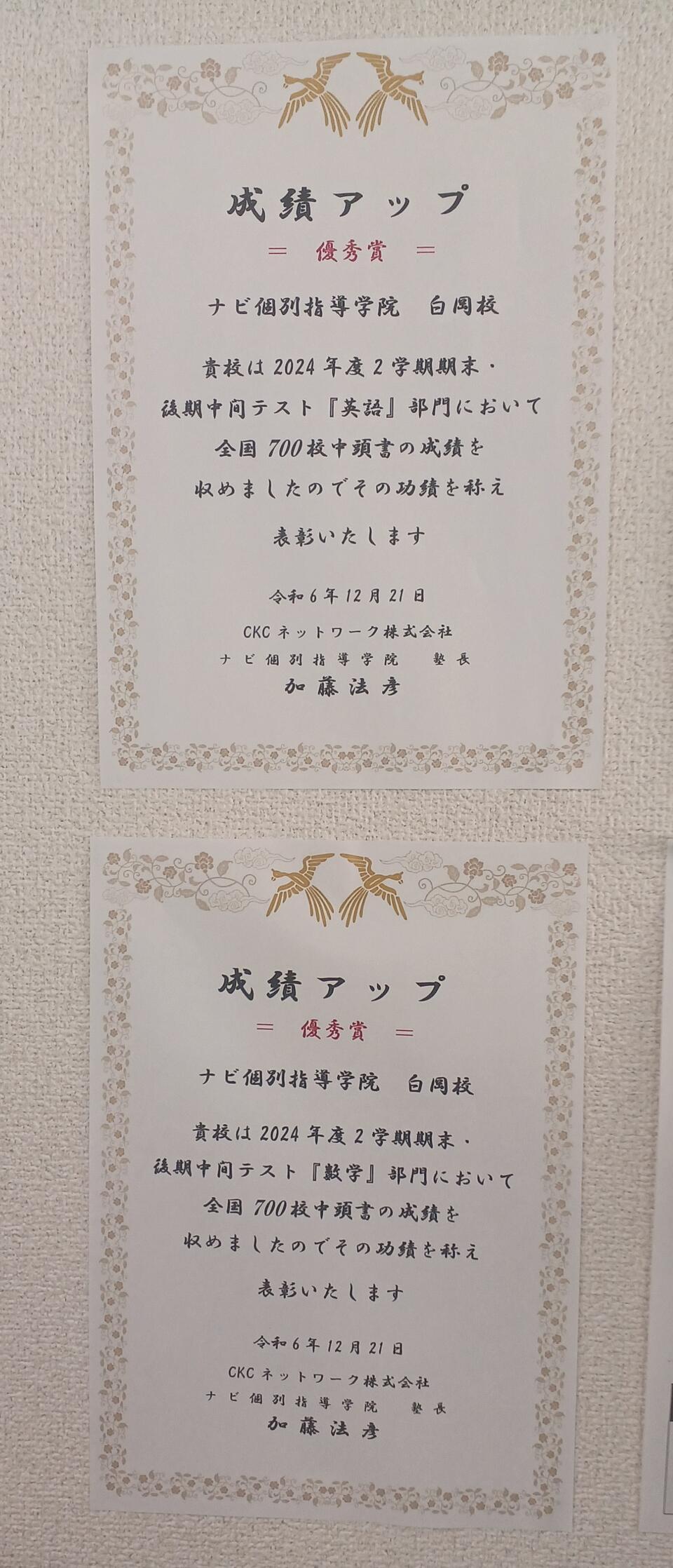 ナビ個別指導学院白岡校が2024年度2学期期末テストにおいて