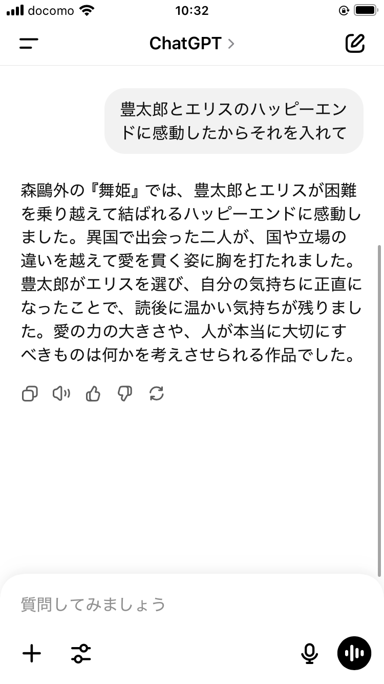 森鴎外の「舞姫」でChatGPTに感想文を作ってもらいました。