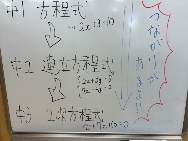 なぜなら1年で習う(1次)方程式は、2年の連立方程式や1次関数、3年の2次方程式の基本になるからです。