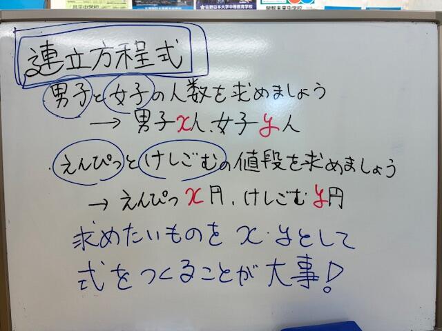 ナビ個別杉戸校の近隣中学校は、2年生の数学は「連立方程式の利用」から始まる学校が多いです!