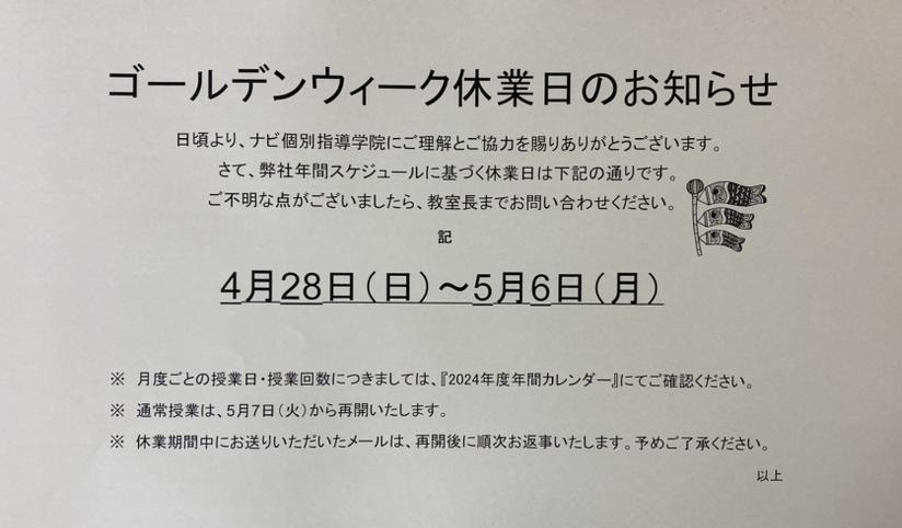 GWは学校はお休みですが、家族との予定が入っていたり、部活の予定が多く入っていたりします。