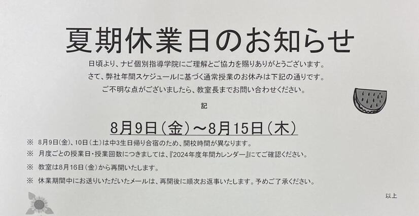 お盆明けからは、2学期に向けての準備を始めましょう!
