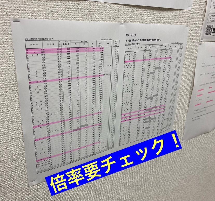 ここからの北辰テストの結果とにらめっこしながらの志望校選びは倍率も参考にしていきましょう。