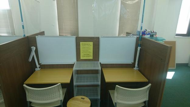 ナビ個別指導学院の授業は、個別の席ごとに設置された自分専用のホワイトボードで解き方や考え方を一緒に確認、それから生徒が問題を解くという「個別授業」スタイルです。