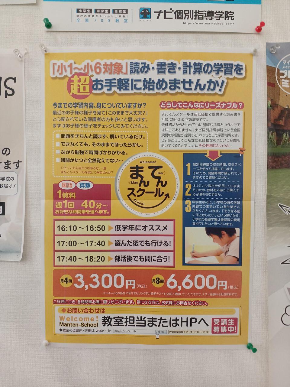 通常の授業のほかに小学生対象のまんてんスクールを開講しています。