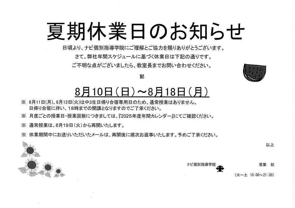 【夏期休業期間】