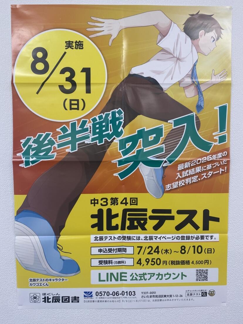 8月以降、2学期の北辰テストはそういった意味でも今までと比べても大事なテストになります。