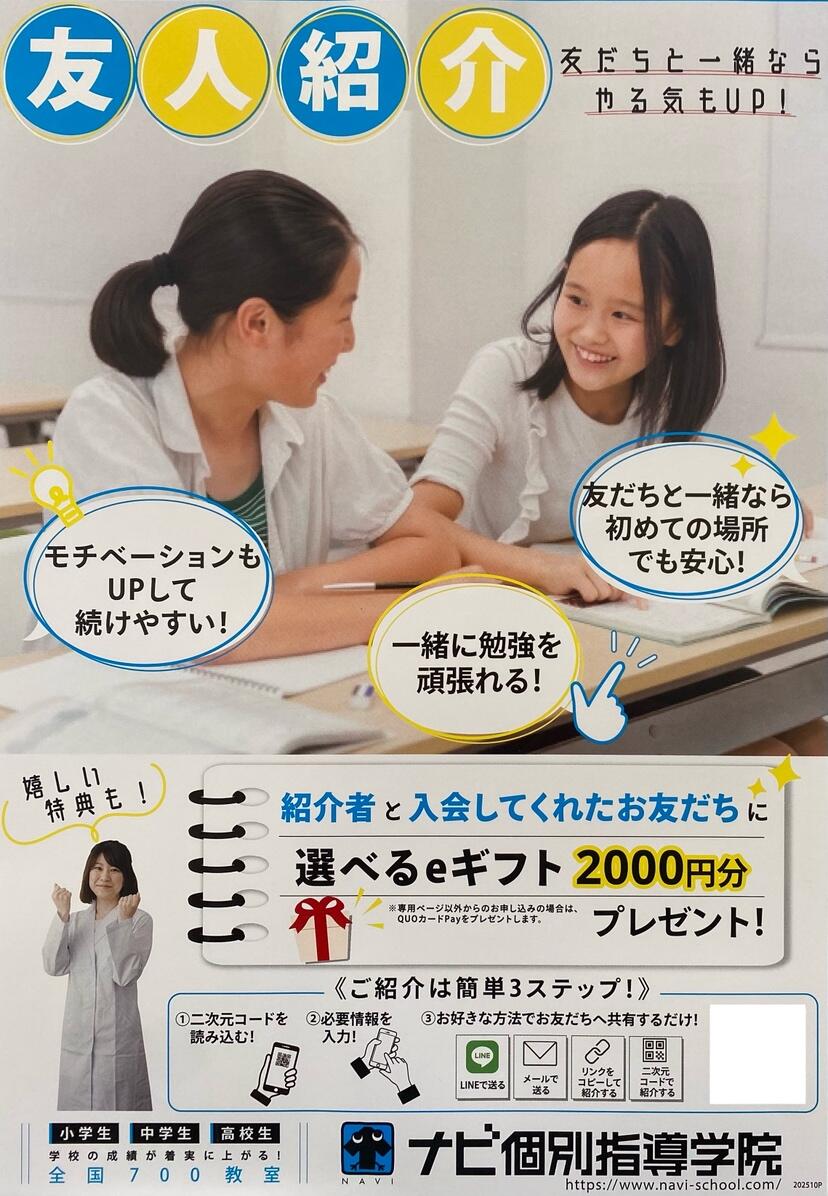 お友だちや知り合いの方が、ナビ個別指導学院に