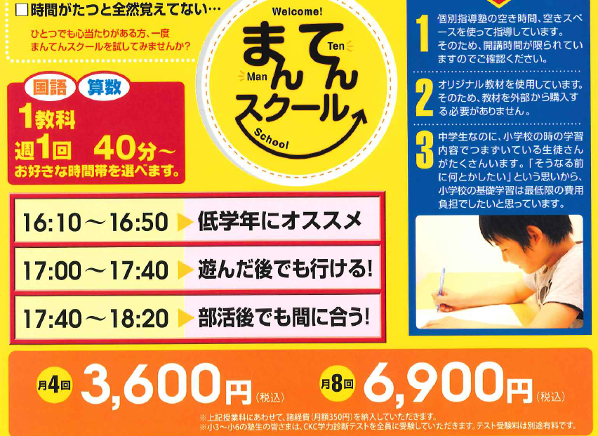 一つでも心当たりのある方、 まんてんスクールを試してみませんか?