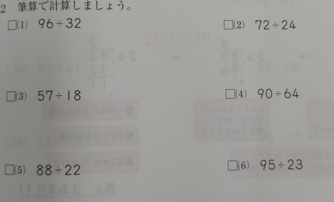 そして3ケタと2ケタのわり算と、桁が増えていきます。
