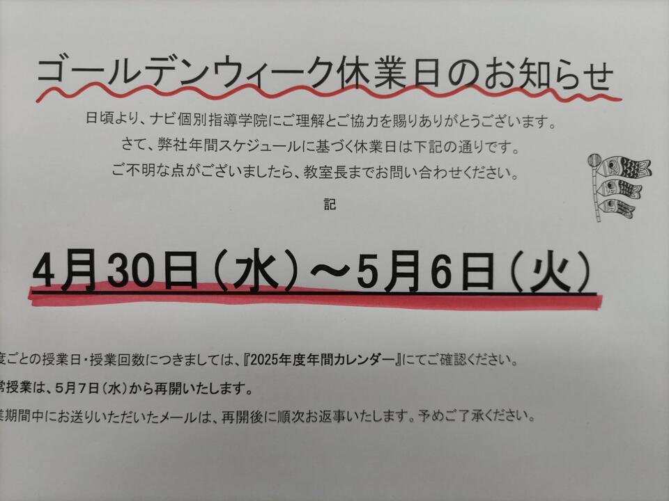 ナビ個別指導学院にご理解とご協力を賜りありがとうございます。