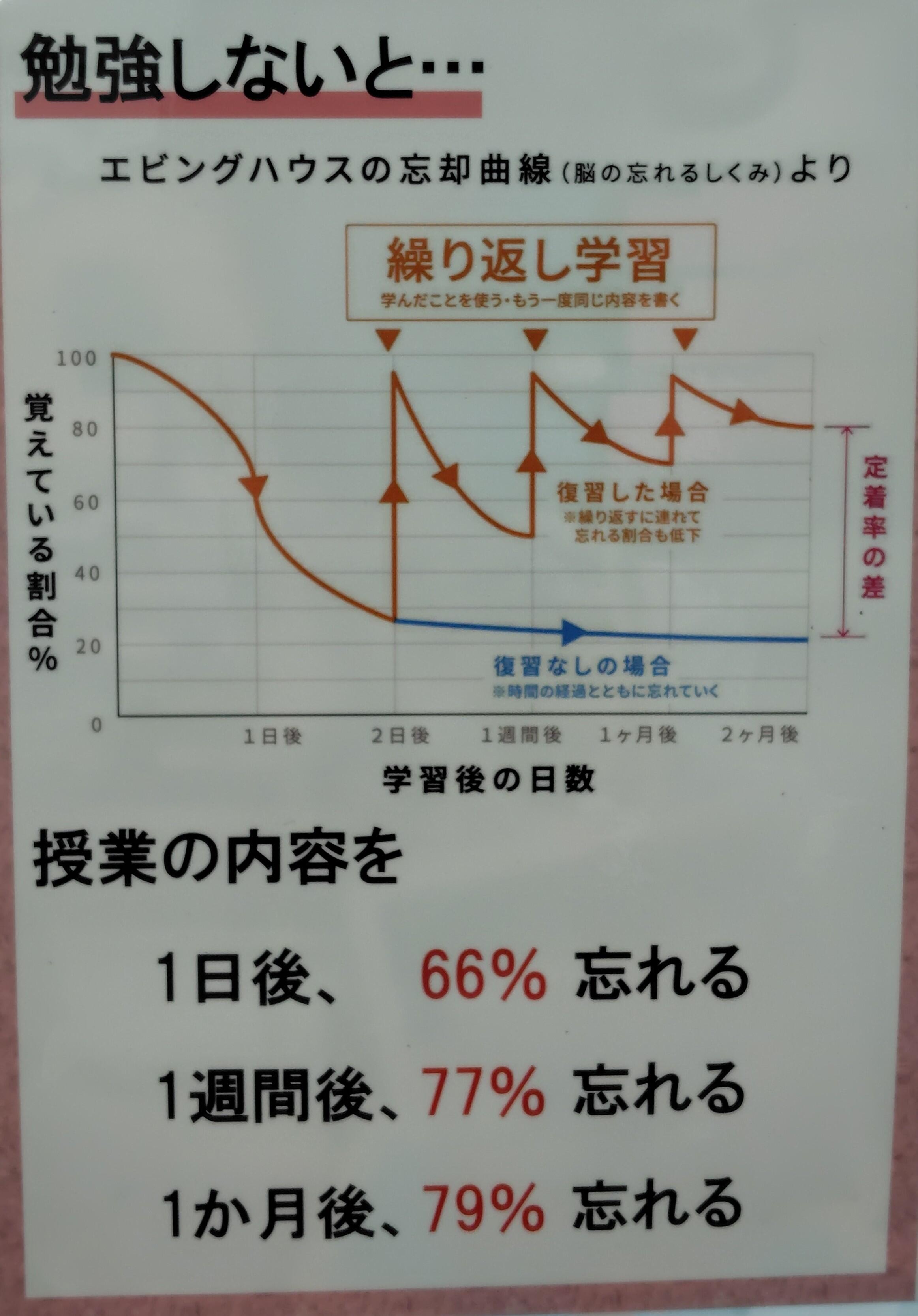 人は覚えた内容の約66%を、なんと1日後には忘れてしまう