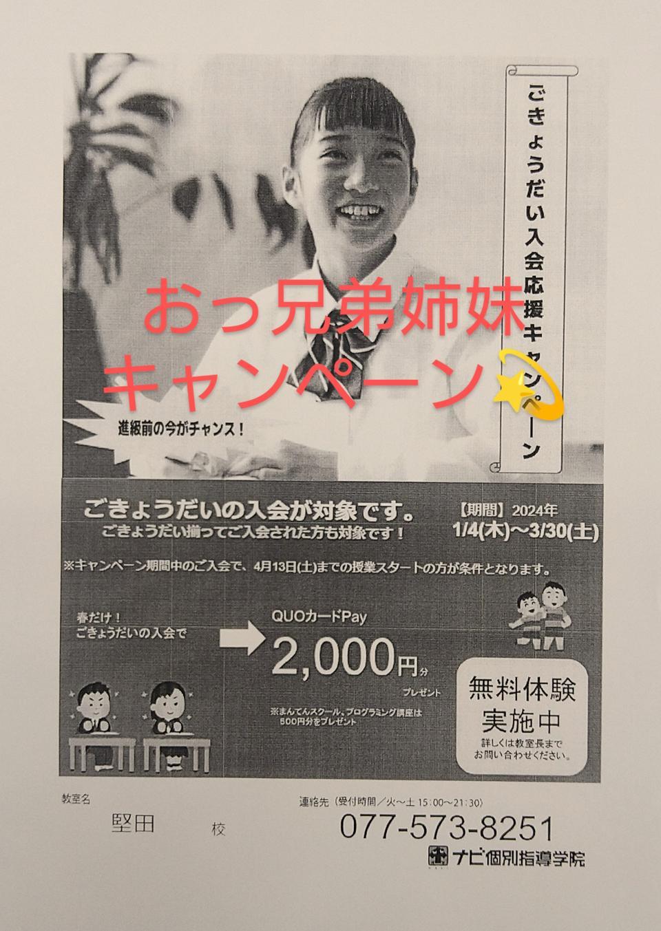 3月末まで兄弟姉妹入会キャンペーン中です!!!