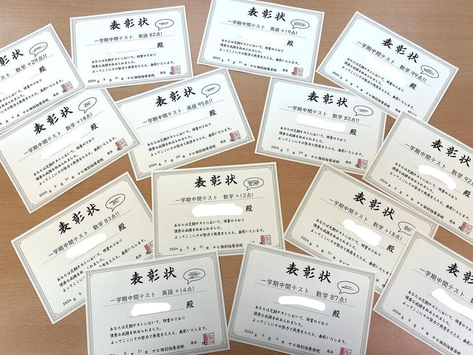 一学期中間テストにて、点数UP・高得点取れた生徒の皆さん、おめでとう!