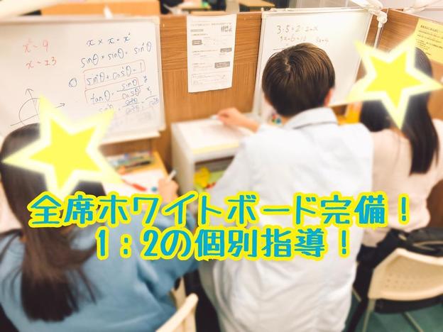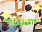ナビ個別指導学院の授業は、個別の席ごとに設置された自分専用のホワイトボードで解き方や考え方を一緒に確認、それから生徒が問題を解くという「個別授業」スタイルです。