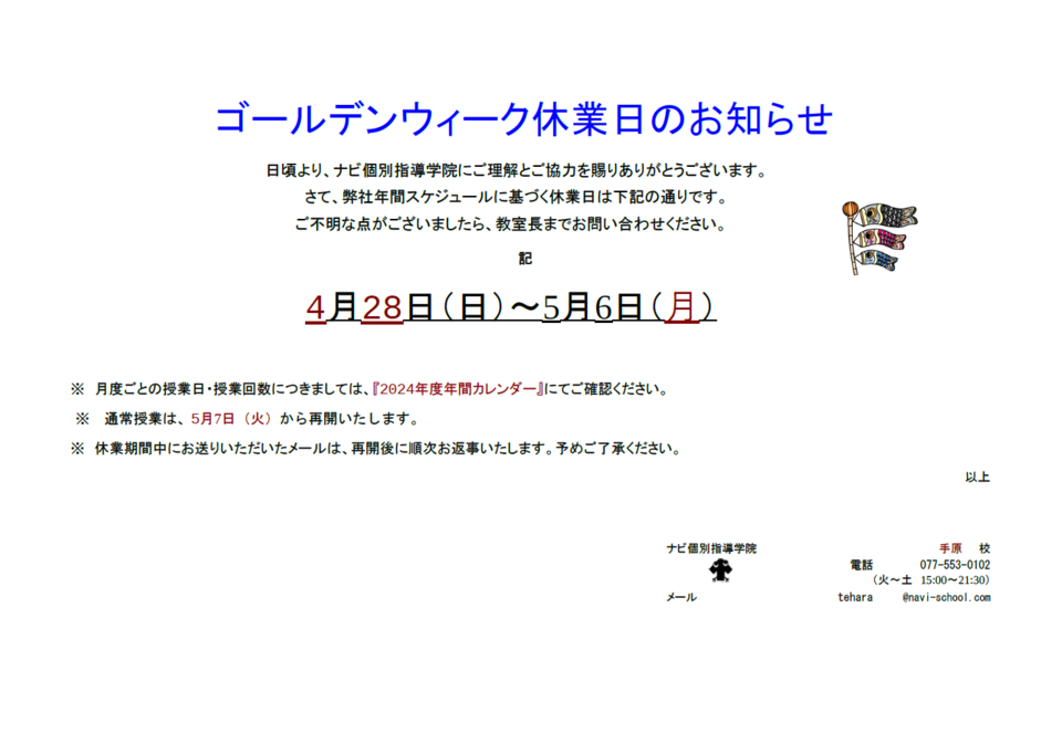 4月28日(日)~5月6日(月)はGW休業のため、お休みです。