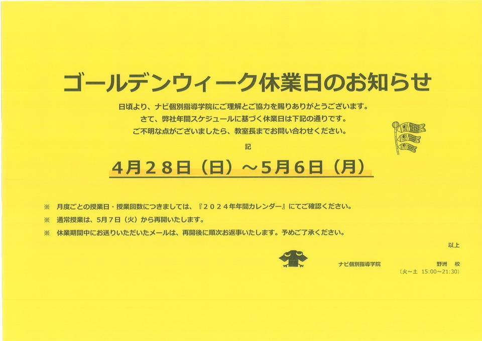 今日から始まるゴールデンウイークも学生の皆さんにとっては