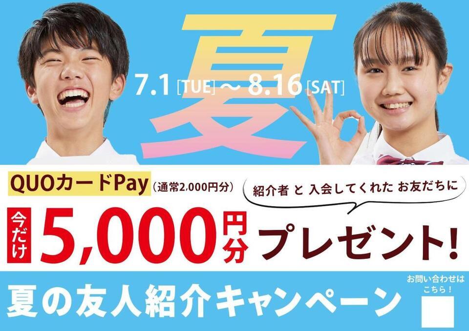 友人紹介増額キャンペーンは8/16(土)までなので、ご通塾を考える良い機会です。